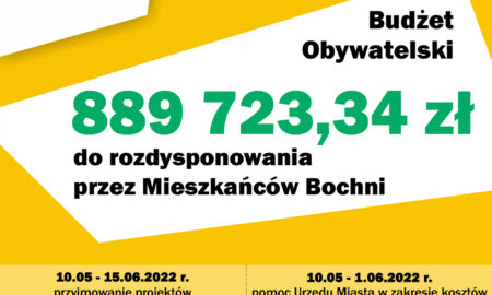 W ósmej edycji Budżetu Obywatelskiego Bochni na 2023 r. do rozdysponowania przez mieszkańców będzie 889 723,34 zł, z czego 700 000 tys. zł...