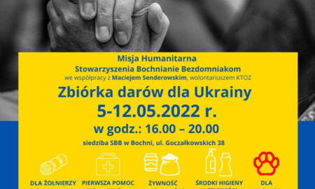 Do 12 maja trwać będzie w Bochni zbiórka darów dla osób z Ukrainy, które pozostały na obszarach dotkniętych wojną (m.in. w miejscowościach...