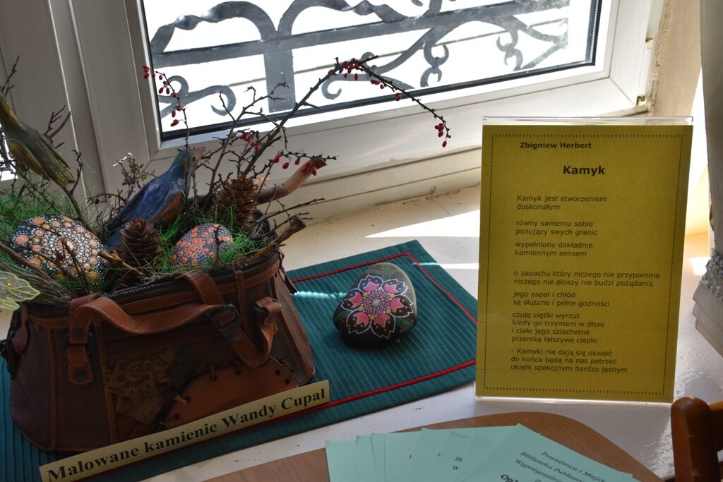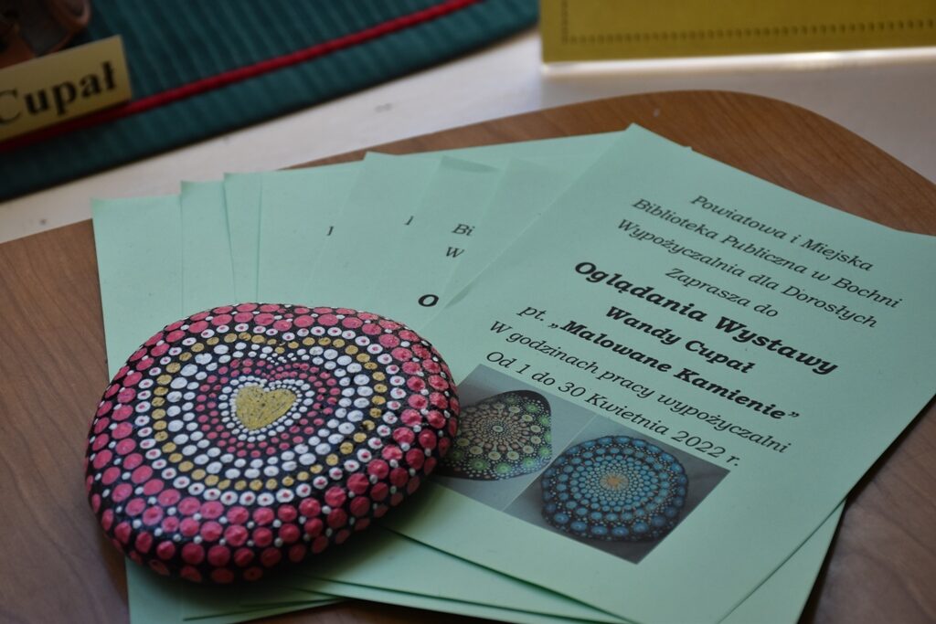 W wypożyczalni dla dorosłych bocheńskiej biblioteki można obejrzeć wystawę pięknych kolorowych kamieni. Autorką pomalowanych farbami akrylowymi kamieni jest bochnianka Wanda Cupał. – „Malowane Kamienie” to zachęta do chwili zatrzymania się w pędzie życia, do docenienia spokoju i do autorefleksji – zachęcają bocheńskie bibliotekarki.