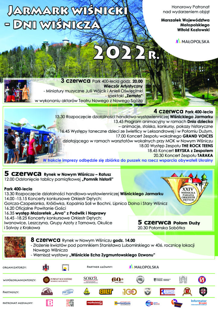 - 13:30 Rozpoczęcie działalności handlowo-wystawienniczej Wiśnickiego Jarmarku