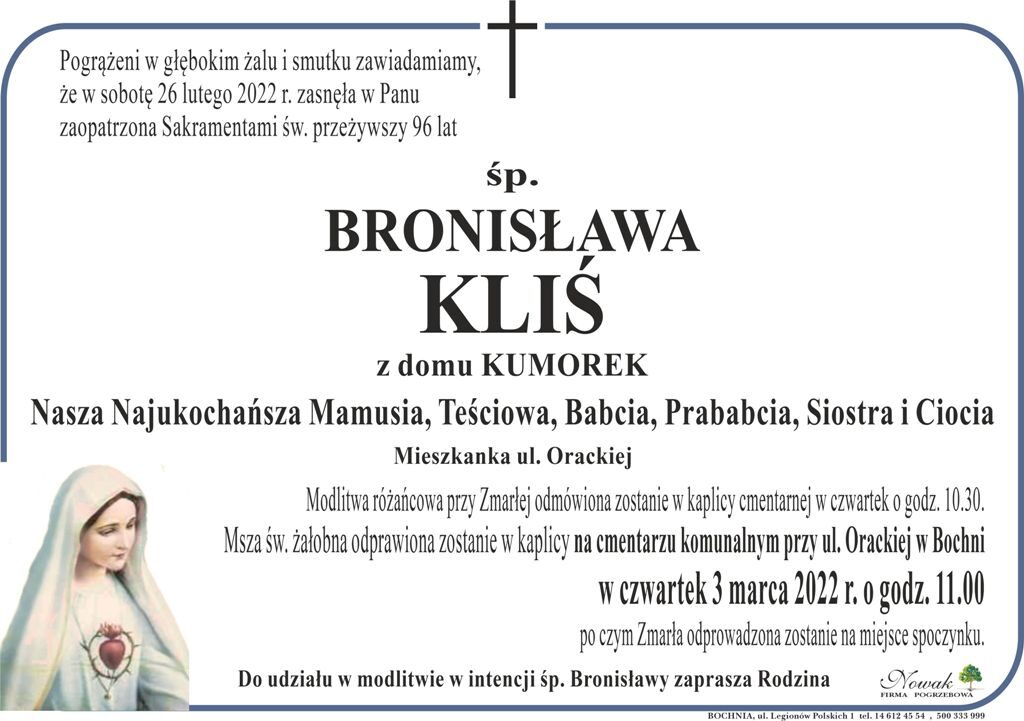 • śp. Bronisława Kliś