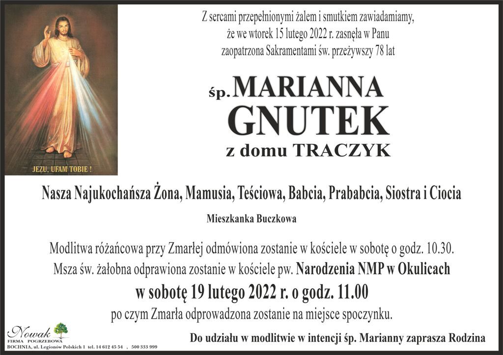 • śp. Marianna Gnutek