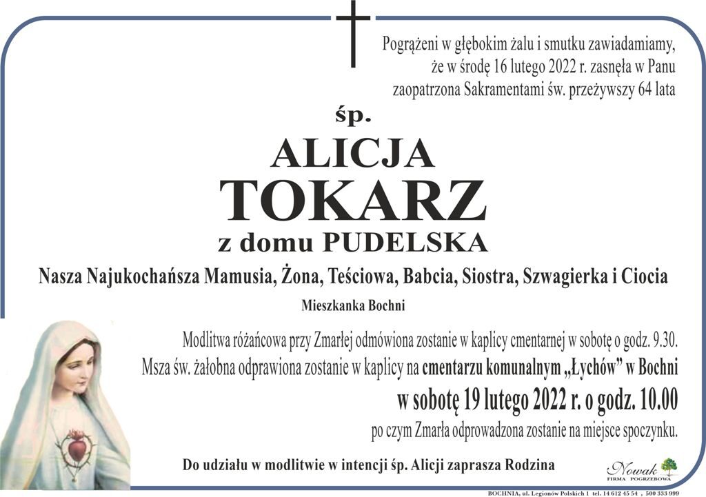 • śp. Alicja Tokarz