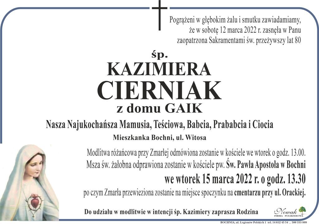 • śp. Kazimiera Cierniak