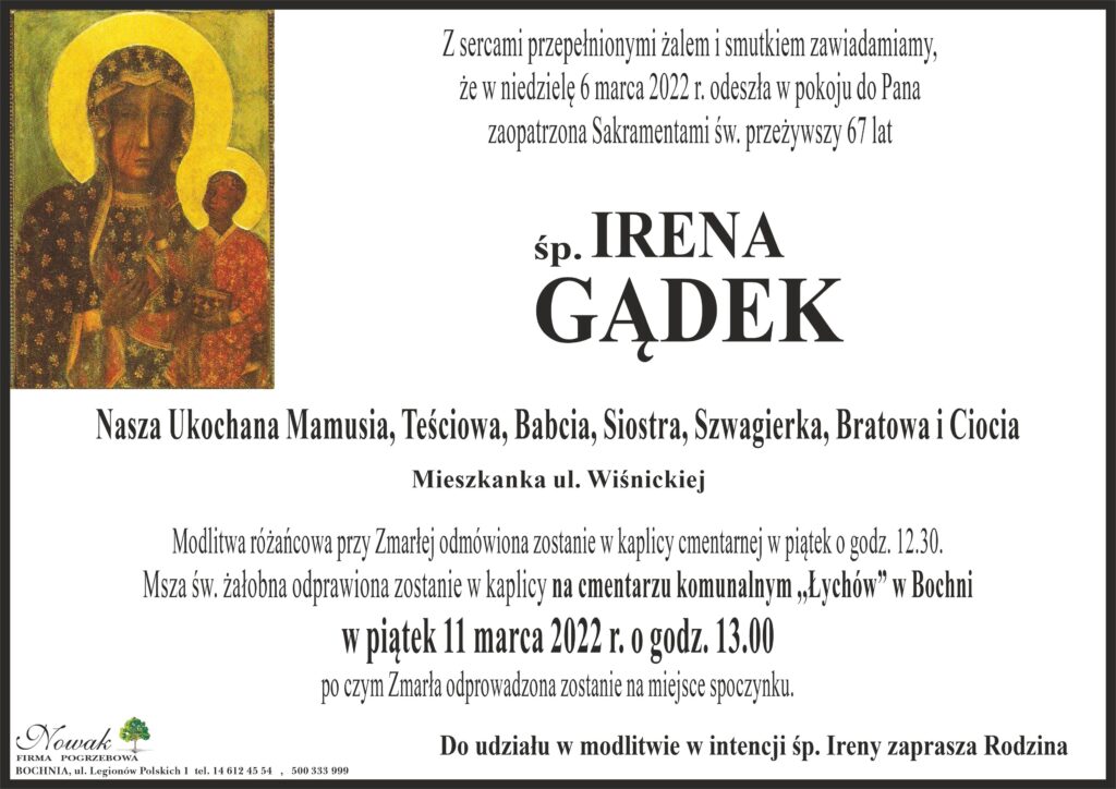 • śp. Irena Gądek
