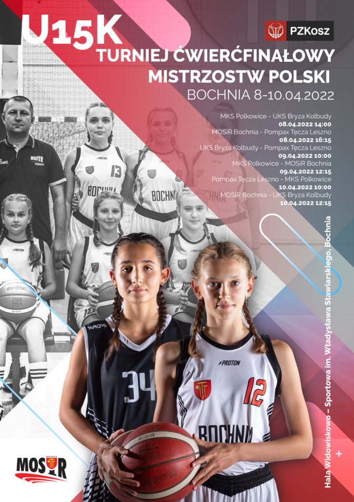 Od piątku do niedzieli zaplanowano turniej 1/4 finału Młodzieżowych Mistrzostw Polski w Koszykówce Kobiet do lat 15. w Organizatorem wydarzenia jest Miejski Ośrodek Sportu i Rekreacji w Bochni.