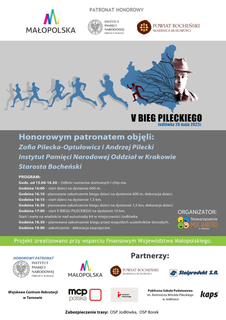 Trwają zapisy do V Biegu Pileckiego w Jodłówce (Gmina Rzezawa), który odbędzie się 28 maja 2022 r. Organizatorem biegu jest Stowarzyszenie Moc Radości.