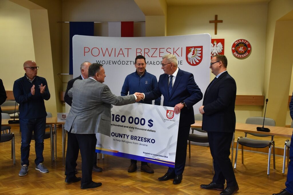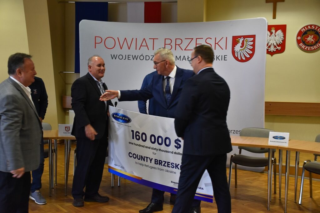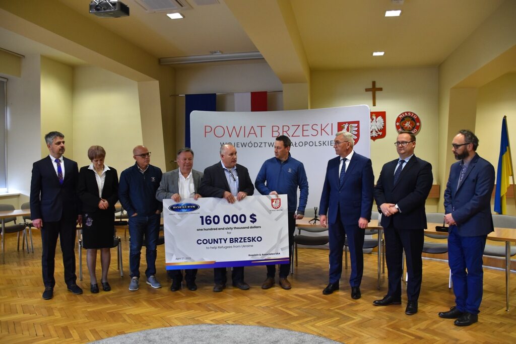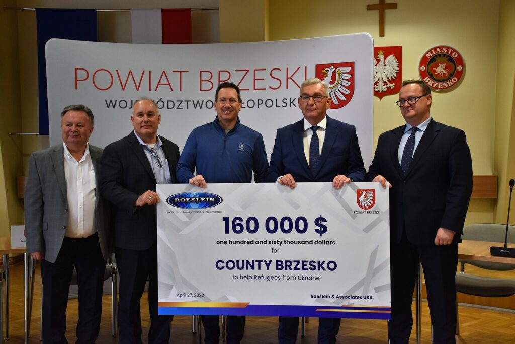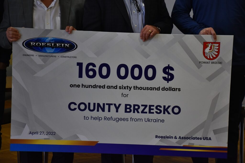 Piękny gest przedstawicieli i pracowników amerykańskiej firmy Roeslein&Associates mającej swoją siedzibę w Dębnie w powiecie brzeskim. Przekazali oni 160 tys. dolarów na pomoc uchodźcom z Ukrainy przebywającym na terenie powiatu brzeskiego. Do Brzeska dotrze także olbrzymi kontener pomocy rzeczowej zorganizowanej przez pracowników tej firmy.