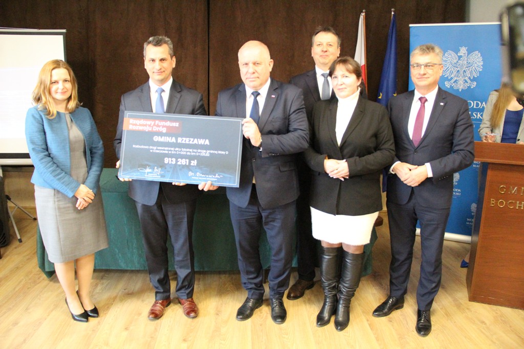 Kolejna dobra wiadomość dla mieszkańców gminy Rzezawa! W piątek wójt Mariusz Palej odebrał z rąk wicewojewody Małopolskiego Ryszarda Pagacza symboliczny czek w wysokości ponad 913 tys. zł na rozbudowę ulicy Szkolnej w Krzeczowie. – To niezwykle ważna inwestycja, która będzie miała ogromny wpływ na poprawę bezpieczeństwa w tym miejscu – podkreśla wójt Palej.