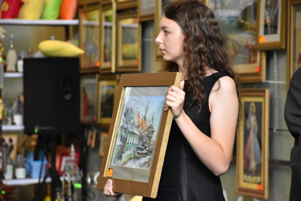 Za 750 zł został sprzedany pierwszy obrazek przedstawiający wiśnicki zamek zimą. Drugie były kolorowe tulipany, za które nabywca zapłacił 700 zł. Akwarelka przedstawiającą ulicę Białą poszła za 2400 zł.