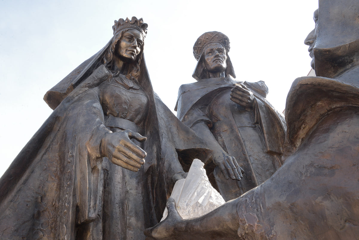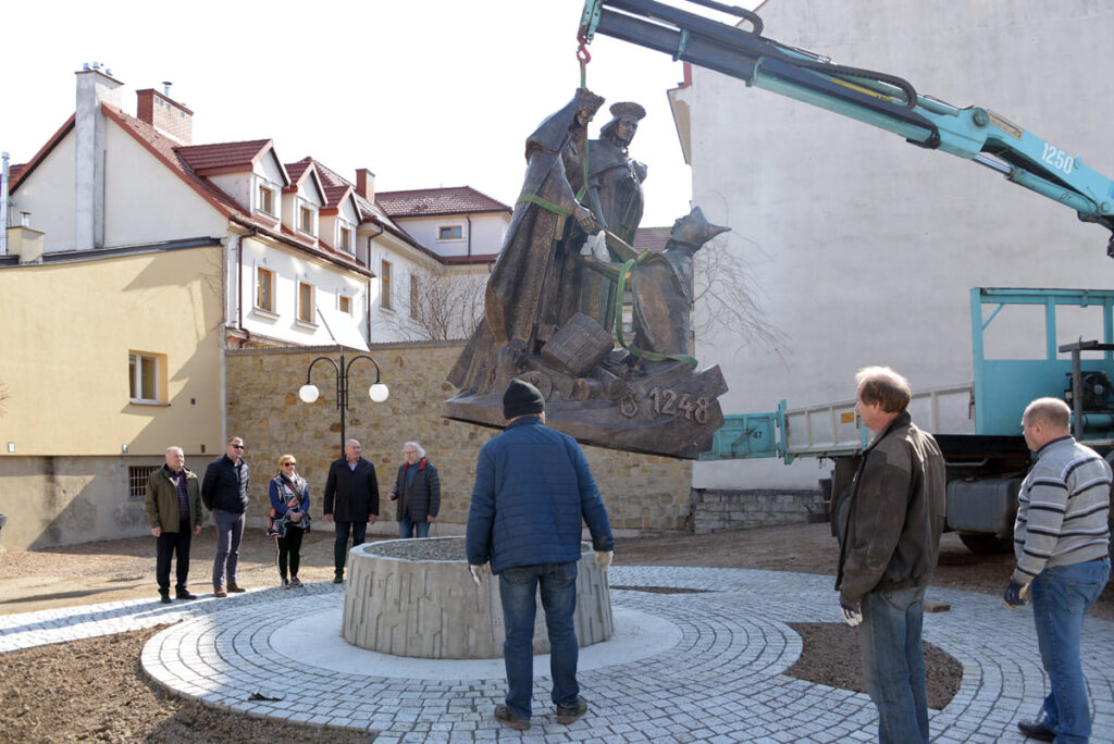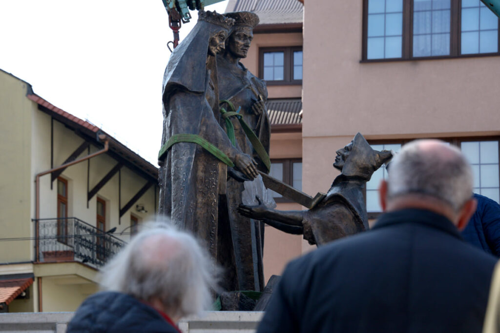Dzieło polskiego artysty rzeźbiarza, profesora Akademii Sztuk Pięknych w Krakowie waży 3 tony. Rzeźba przedstawia postacie św. Kingi, księcia Bolesława V Wstydliwego, który nadał Bochni prawa miejskie oraz gwarka trzymającego kryształ soli z legendarnym pierścieniem.