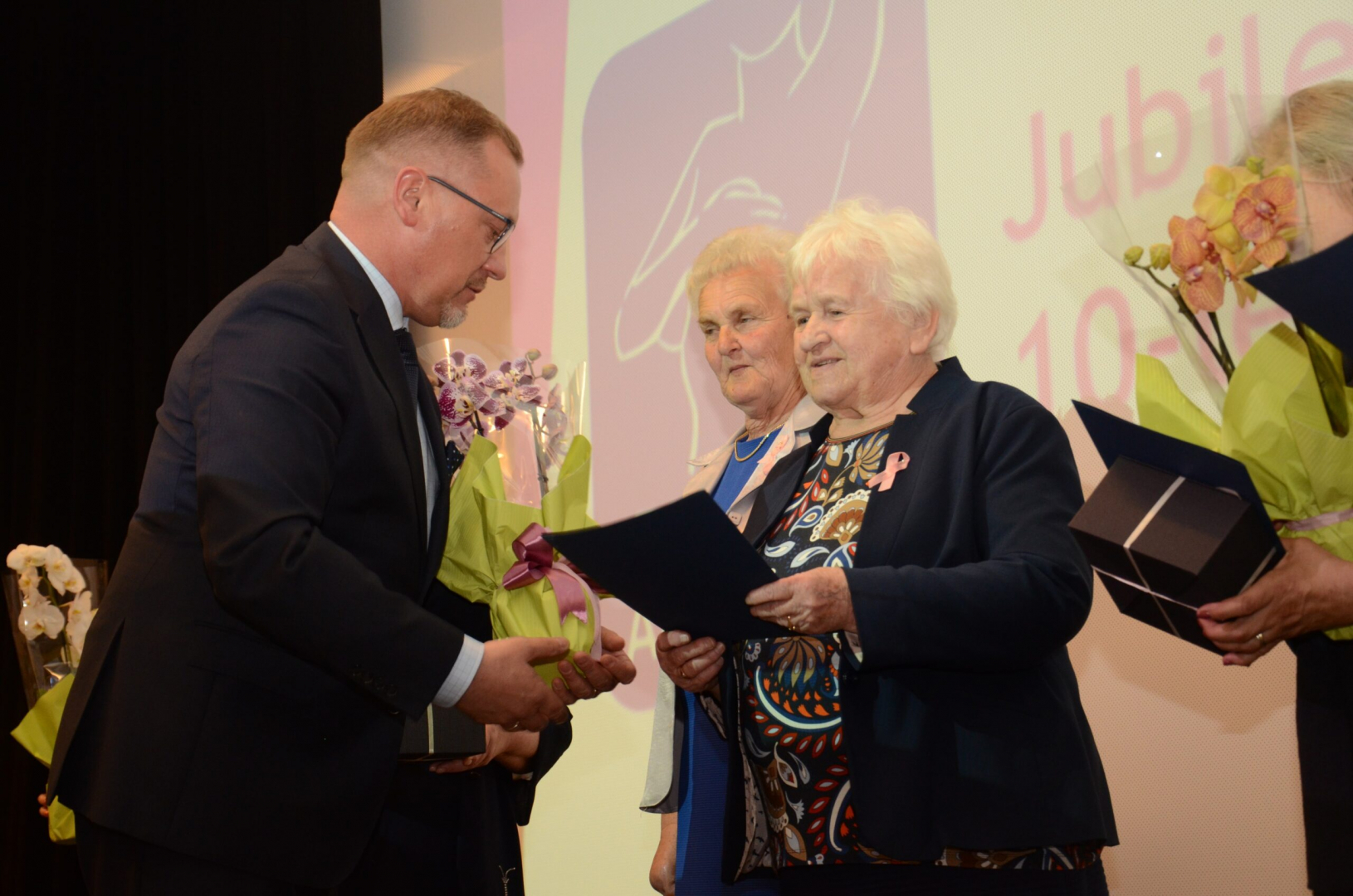 Burmistrz Tomasz Latocha wręczył specjalne upominki i kwiaty paniom działającym w zarządzie Stowarzyszenia. Otrzymały je Krystyna Barbara Serwin, Marta Czesak, Stanisława Gajewska, Kazimiera Mendel, Nina Pałka oraz Helena Ropek.