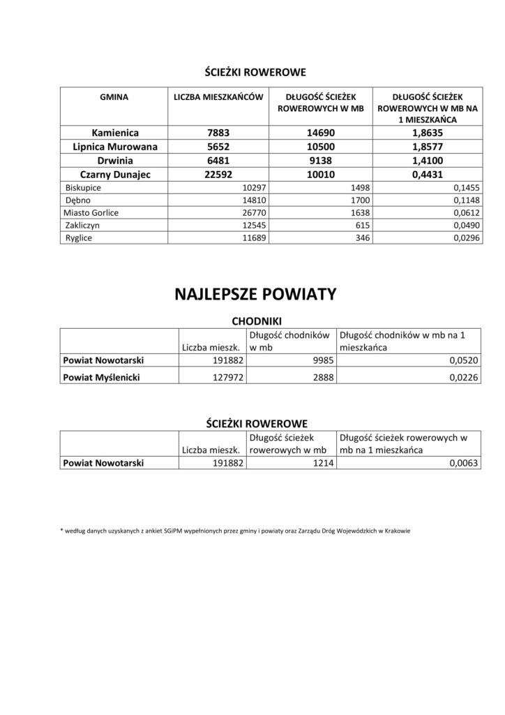 Zestawienie powstało na podstawie danych zebranych z wszystkich gmin i powiatów w województwie małopolskim, a także informacji przekazanych przez Zarząd Dróg Wojewódzkich w Krakowie.