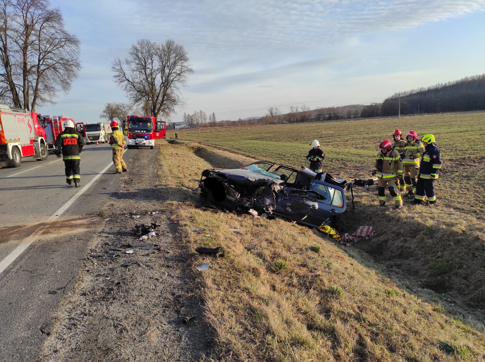 W wyniku zderzenia golf został praktycznie zmiażdżony. Kierowca był w nim zakleszczony. Strażacy musieli użyć specjalistycznych narzędzi, by go wydobyć z pojazdu.