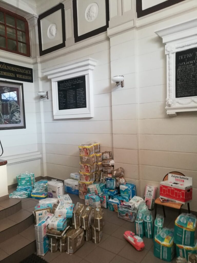 – Dziękujemy wszystkim, którzy włączyli się w to dzieło. Nauczycielom a przede wszystkim Wam – uczniom, bez waszego zaangażowania nie byłoby to możliwe. Do pomocy przybyły również druhny i druhowie ze Związku Harcerstwa Polskiego, którzy uczą się na co dzień w naszej szkole.Do końca tego tygodnia (tj. do 4 marca), harcerze będę dodatkowo koordynowali zbiórkę artykułów dziecięcych: zabawek, pluszaków, kredek, kolorowanek, przyborów szkolnych – poinformowano na profilu FB szkoły.