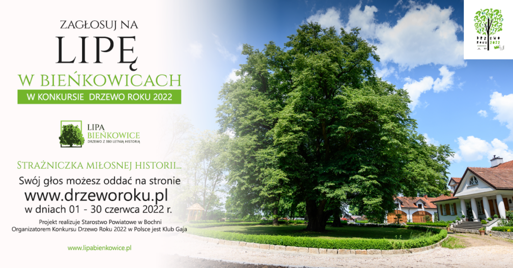 Licząca 380 lat lipa, która dumnie rośnie w Bieńkowicach w Powiecie Bocheńskim znalazła się w finale i będzie rywalizowała o tytuł Drzewa Roku 2022. Głosowanie ruszyło 1 czerwca i potrwa cały miesiąc.