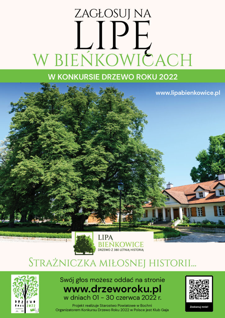 Więcej informacji dotyczących lipy można znaleźć na stronie www.lipabienkowice.pl , aby zagłosować na Drzewo Roku 2022 wystarczy wejść na stronę www.drzeworoku.pl i zagłosować na LIPĘ Z BIEŃKOWIC!