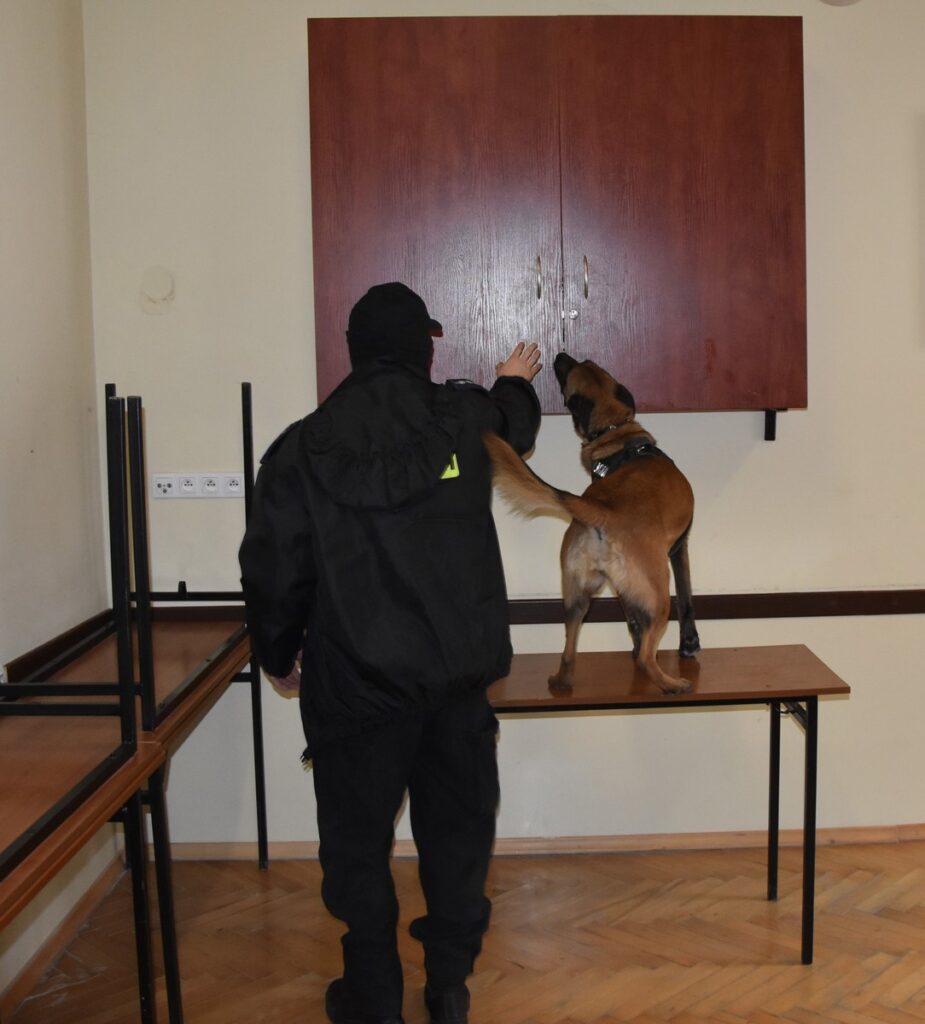 Drugie w tym roku poszukiwania środków narkotycznych zorganizowano w poniedziałek. Tuż po godzinie 10:00 pies razem ze swoim przewodnikiem stawili się w Zakładzie Karnym w Nowym Wiśniczu na zaplanowanym wcześniej spotkaniu. W ciągu kilku godzin w asyście Kierownika Działu Ochrony porucznika Marcina Motaka, Malka przeszukała wskazane przez strażników więziennych cele mieszkalne osadzonych oraz inne miejsca ich przebywania – pomieszczenia socjalne, świetlicę, szkołę, hale produkcyjne przywięziennego zakładu pracy oraz place spacerowe. Wszystko to pod kątem poszukiwania środków narkotycznych.