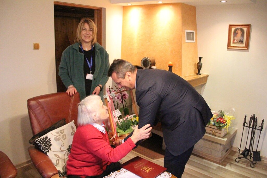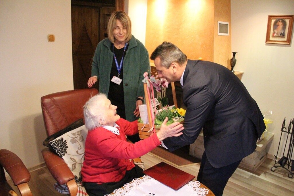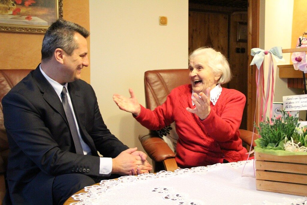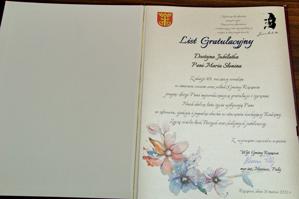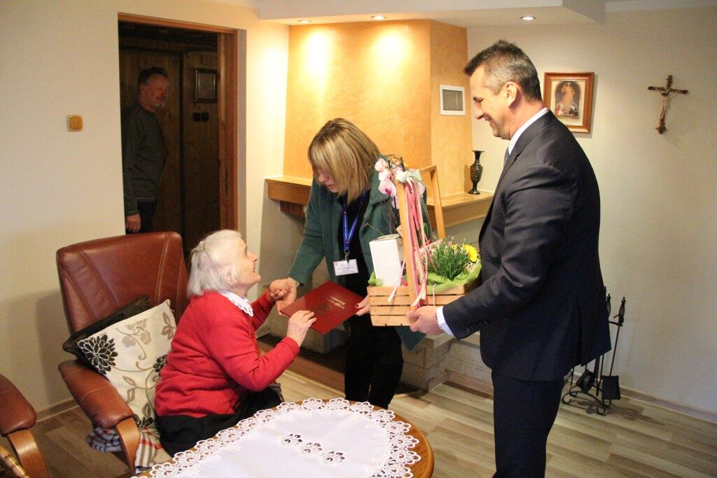 Pani Maria jak na swój wiek jest w znakomitej wręcz formie. Podczas spotkania Jubilatka była niezwykle wzruszona i szczęśliwa. Tryskała dobrym humorem. Co więcej zaprosiła wójta na swoje kolejne urodziny, za rok.