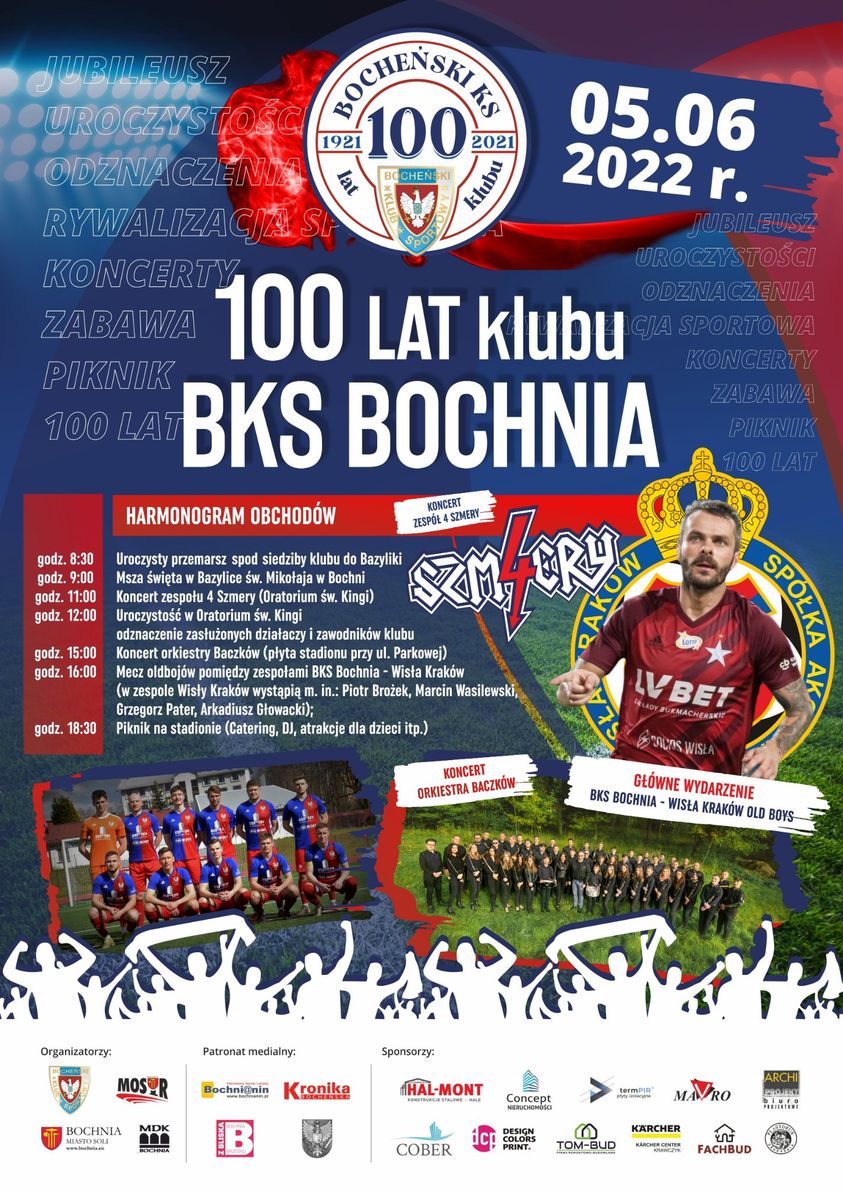 Dziś zaplanowano obchody 100-lecia Bocheńskiego Klubu Sportowego. W programie wydarzenie mnóstwo atrakcji, wisienką na torcie będzie spotkanie, w którym Złota Jedenastka BKS zmierzy się z Oldbojami słynnej Wisła Kraków. Patronat nad wydarzeniem sprawuje portal BochniazBliska.pl