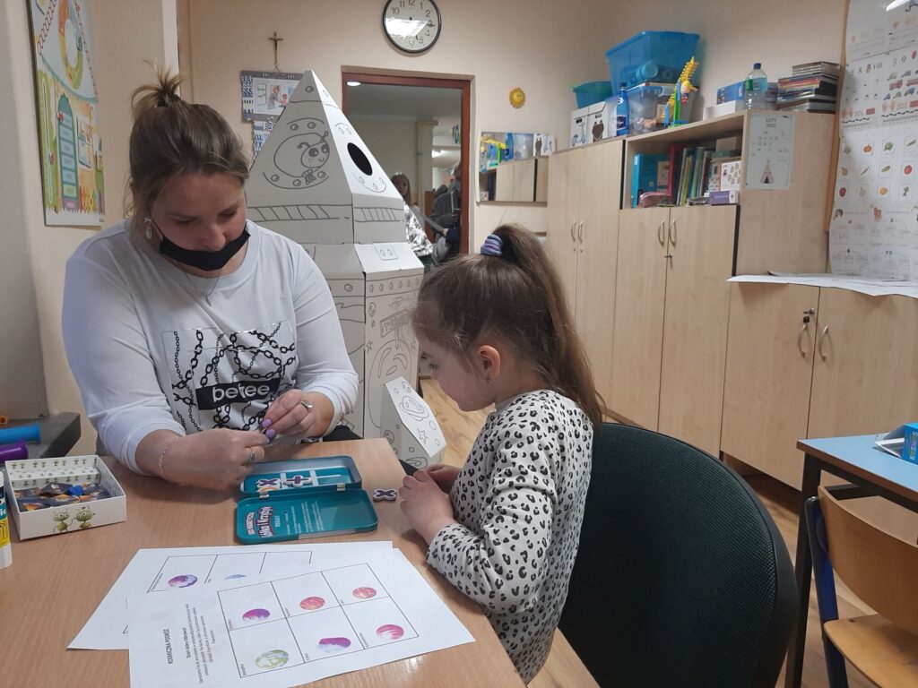 Po zakończonych zajęciach dzieci mogły udać się do kolejnego układu, w którym odwiedzały planety o tajemniczych nazwach, takich jak na przykład „Kosmomowa”, „Libro”, „Pyssle”, „Sensorka” czy „Chemikus”. Zajrzały do wybuchowej pracowni chemicznej. Zaobserwowały, czym jest próżnia. Odwiedziły także inne szkolne pracownie, salę logopedyczną, świetlicę oraz bibliotekę. Wyruszyły w przyszłość, kodując i bawiąc się robotami. „Latały” w sali integracji sensorycznej. Wykonywały też różne inne zadania i ćwiczenia. Za każde z nich otrzymywały pieczątki, a jeśli udało się ich zdobyć odpowiednio dużo, odbierały drobny kosmiczny upominek.