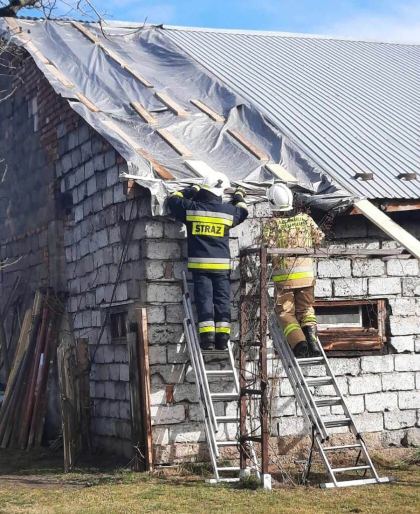 Mocne podmuchy doprowadziły dziś do uszkodzenia poszycia dachowego na budynku mieszkalnym w Borku. Wiatr zniszczył też dach na budynku gospodarczym oraz uszkodził wiatę przystankowa w tej miejscowości.