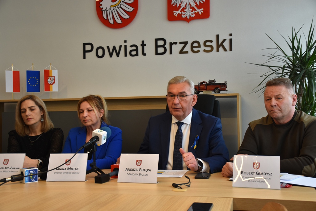 Nawet 2,5 tys. uchodźców z Ukrainy może przebywać obecnie na terenie powiatu brzeskiego – poinformował Robert Gładysz koordynator powiatowy ds uchodźców podczas konferencji prasowej w Starostwie Powiatowym w Brzesku. W spotkaniu zorganizowanym dziś przez starostę Andrzeja Potępę wzięły udział także: Ewa Chmielarz-Żwawa z-ca dyr. ds. Administracji Medycznej i Pielęgniarstwa w SP ZOZ w Brzesku oraz Janina Motak szefowa wydziału edukacji w Starostwie Powiatowym w Brzesku.