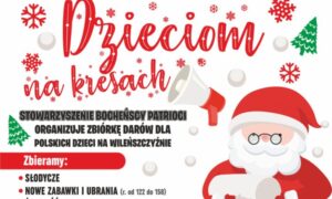 1,5 tony darów (głównie chemia gospodarcza, artykuły szkolne, sprzęt sportowy, a także m.in. leki, nowe zabawki i ubrania) trafiło do Rodaków na Wileńszczyźnie w ramach akcji „Dzieciom na Kresach” organizowanej cyklicznie przez Stowarzyszenie Bocheńscy Patrioci.