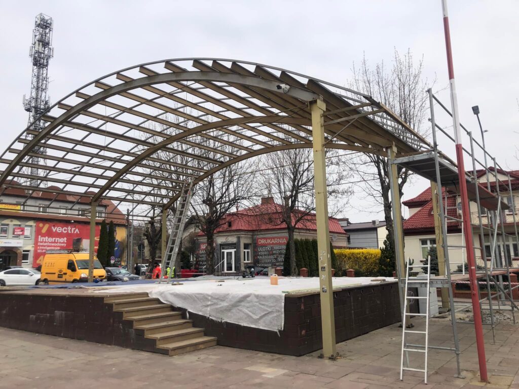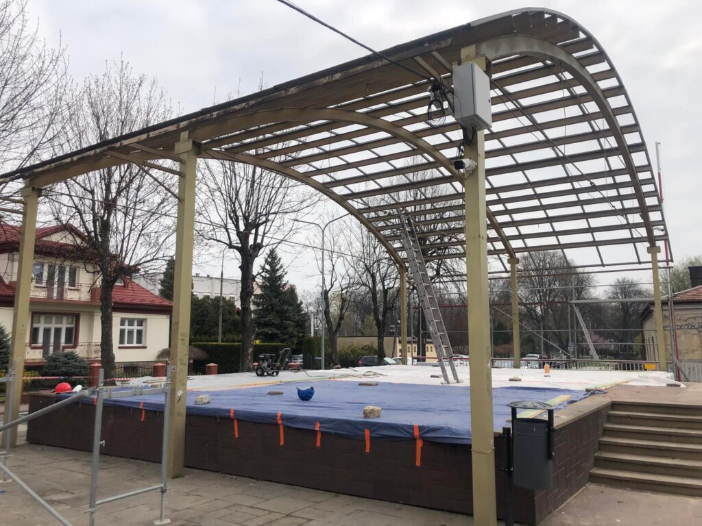 Niedługo scena na Placu Kazimierza Wielkiego będzie jak nowa! Ruszył kompleksowy remont całej konstrukcji w tym wymiany poszycia dachowego oraz przebudowy przyłączy i instalacji elektrycznych.