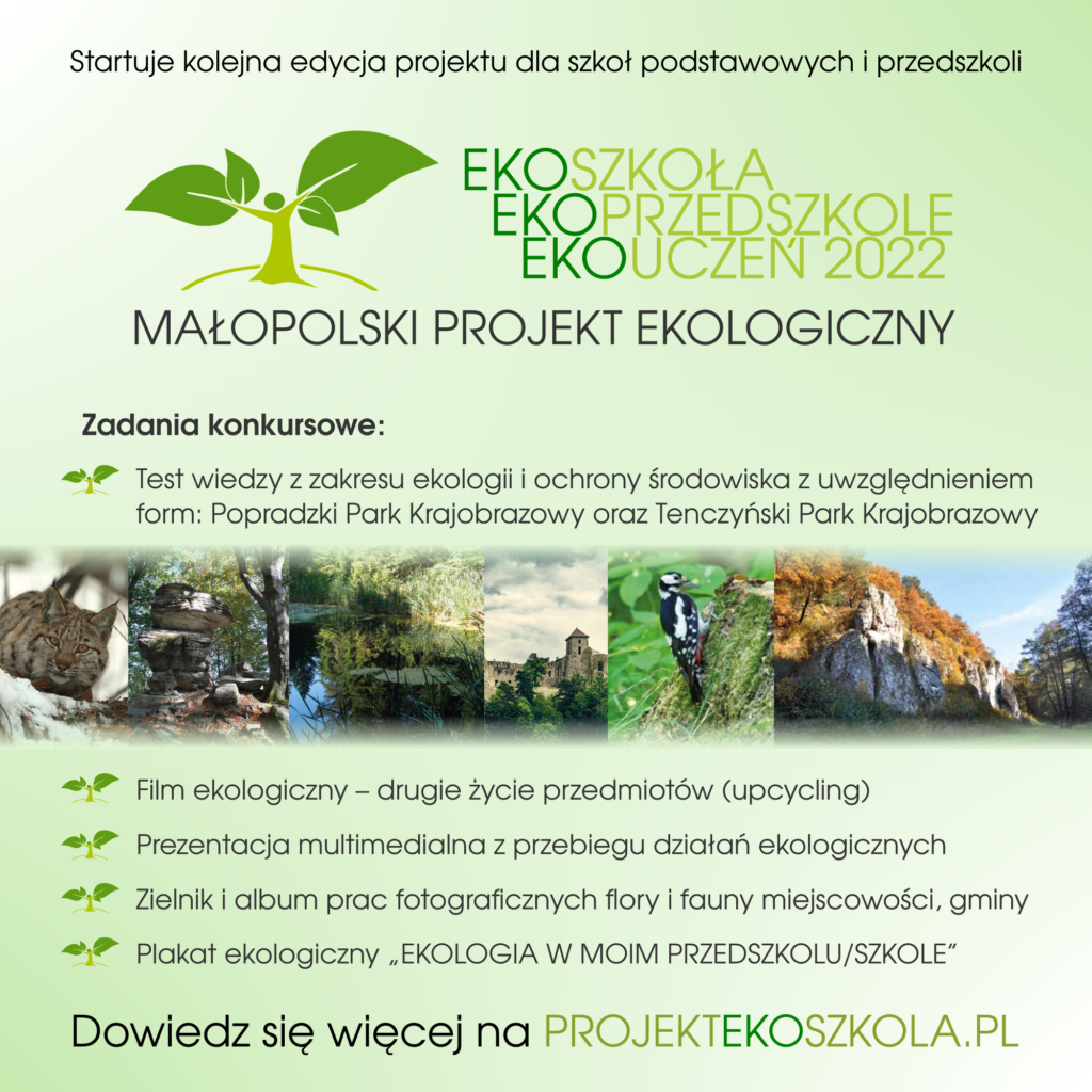 Gminny Ośrodek Kultury w Borzęcinie i Zespół Szkolno-Przedszkolny im. Bł. Karoliny Kózkówny w Borzęcinie Dolnym organizują w roku szkolnym 2021/2022: MAŁOPOLSKI PROJEKT EKOLOGICZNY EKOSZKOŁA, EKOPRZEDSZKOLE, EKOUCZEŃ 2022. Partnerem projektu jest Kuratorium Oświaty w Krakowie.