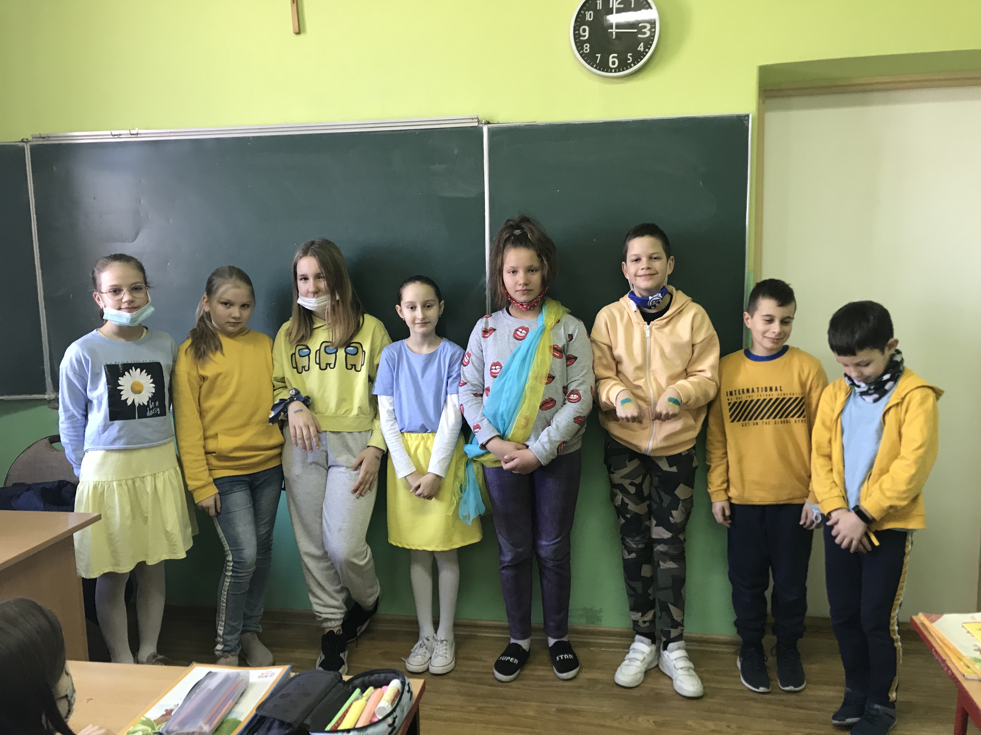 Młodzi ludzie chętnie odpowiedzieli na apel pomocy i od rana przynosili paczki. Wtorek był dniem szczególnej solidarności z narodem ukraińskim. Na znak tego uczniowie założyli niebiesko – żółte ubrania (barwy narodowe Ukrainy).
