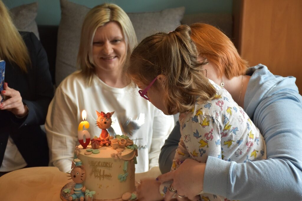 Przy okazji dziewczynki otrzymały kosmetyki i ubranka zebrane podczas akcji w Szkole Podstawowej nr 1 oraz na Siłowni Dla Kobiet Ladies Team. Prezentem był też piękny tort przygotowany przez Pracownię Tortów Sylwii Pałkowskiej.