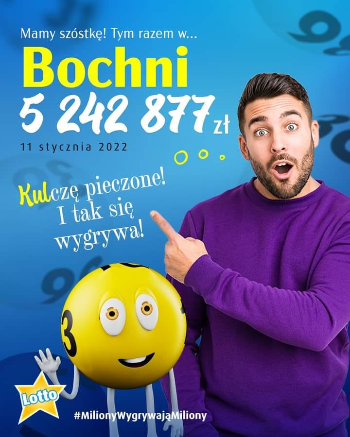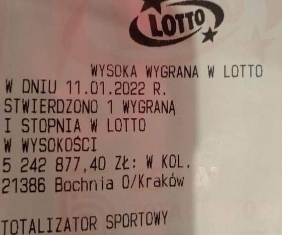 Wydarzenia 🔴 Szóstka w LOTTO padła w Bochni! Wygrana to ponad 5 mln zł! Małgorzata Więcek-Cebula Dodano 12 stycznia 2022 16:37 Share Tweet Share Share Email Komentarzy - REKLAMA - To się nazywa szczęście! Osoba, która we wtorek wypełniła kupon LOTTO w punkcie przy ul. Karosek 25 w Bochni wygrała 5 242 877,40 zł. Szczęśliwe liczby to 7, 12, 15, 35, 42, 47. Tagi:lotto w Bochni, Polecane, wygrana 4 komentarze 4 Comments Dodaj komentarz Anuluj pisanie odpowiedziTwój adres e-mail nie zostanie opublikowany. Wymagane pola są oznaczone *Komentarz * Nazwa E-mail Witryna internetowa Δ Share Tweet Share Share Email - REKLAMA -