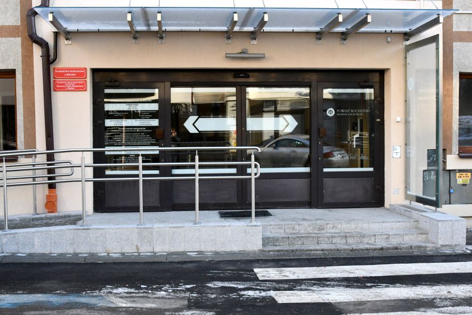 Budynek Starostwa Powiatowego w Bochni od ul. Różanej jest już dostępny dla osób poruszających się na wózkach inwalidzkich. Zakończona właśnie inwestycja pochłonęła blisko 350 tysięcy złotych.