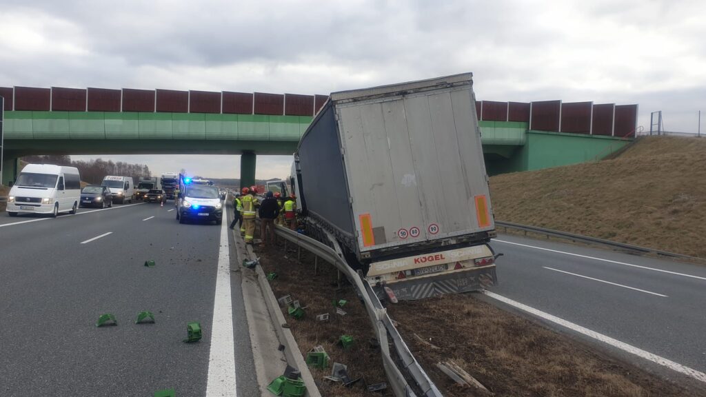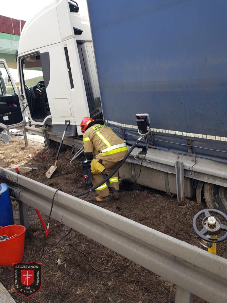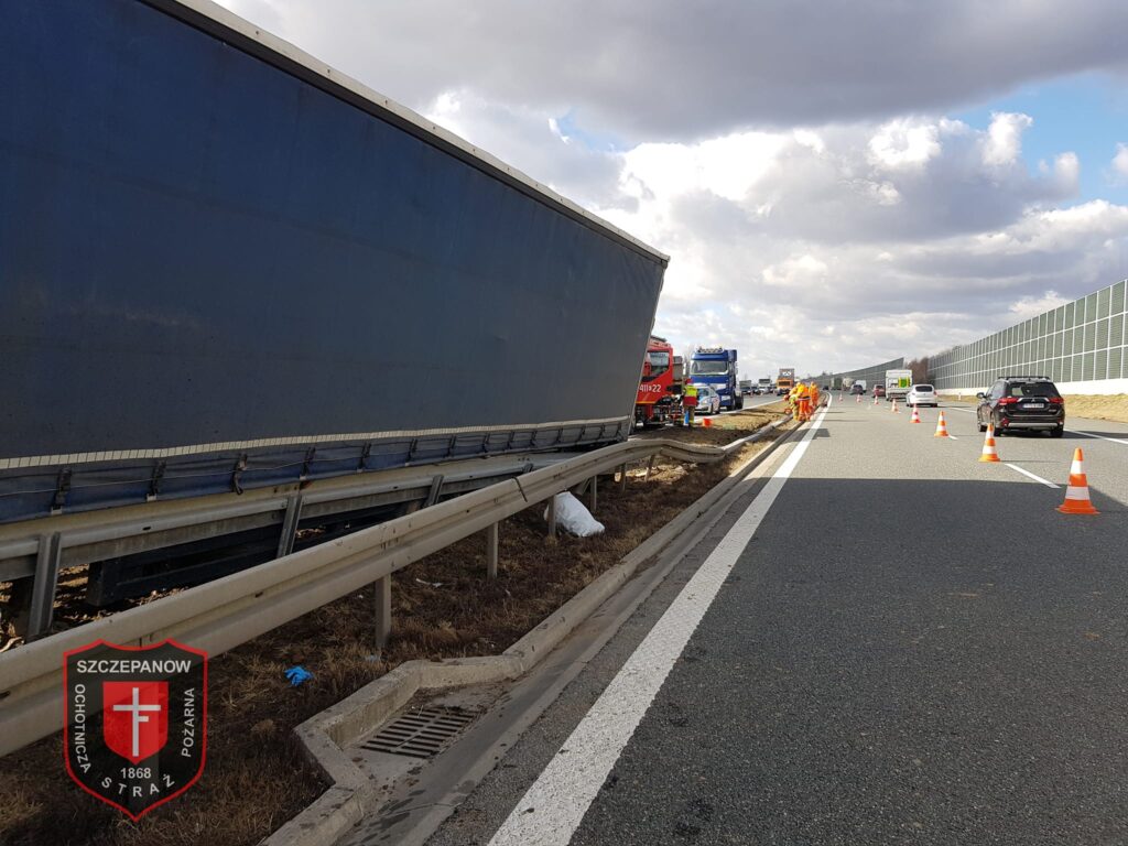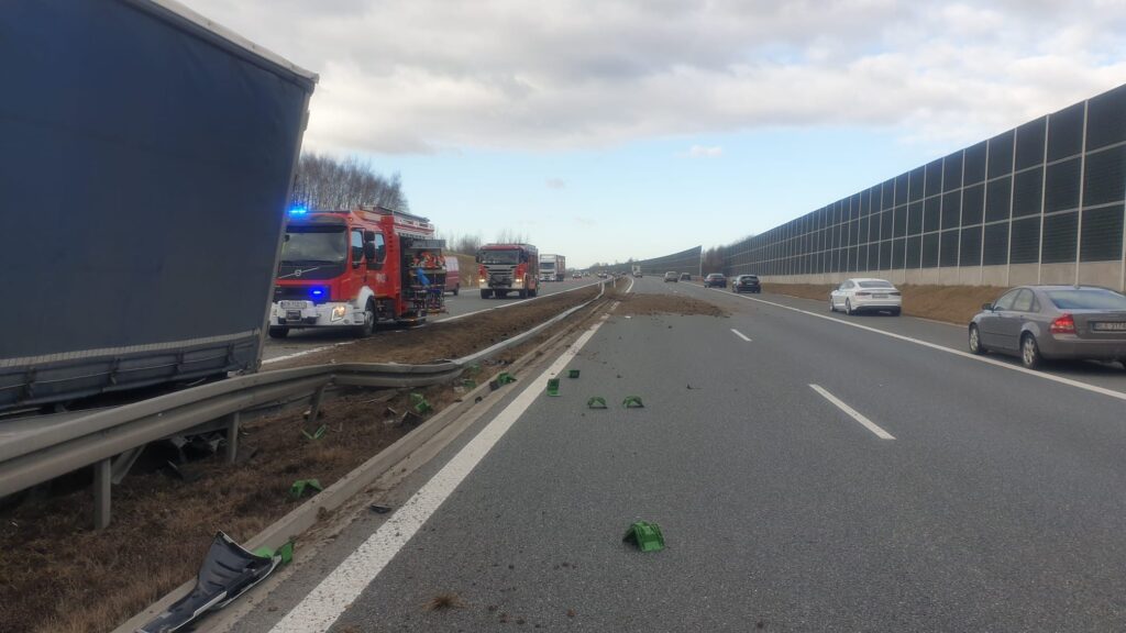 Uwaga kierowcy podróżujący autostradą A4. Dziś (piątek) tuż przed godziną 9 na 474 km w kierunku Krakowa (na wysokości Szczepanowa) samochód ciężarowy przewożący deski podłogowe uderzył w bariery odgradzające pasy ruchu. Pojazd utknął na pasie zieleni.
