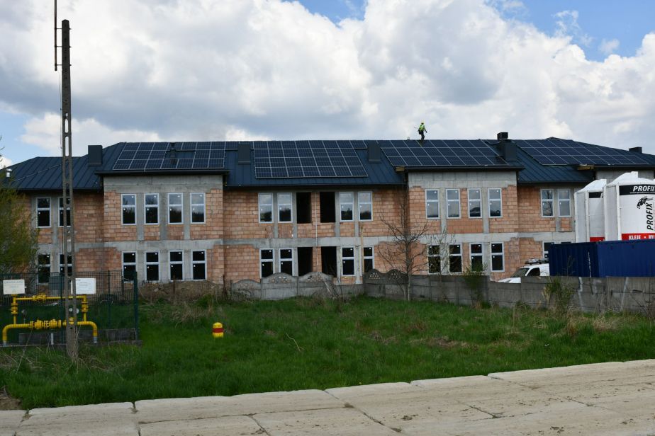 Roboty budowlane idą pełna parą. W budynku wykonywane są już niezbędne instalacje, montowane są windy oraz instalacja fotowoltaiczna. Trwają też prace polegające na ociepleniu dachu.