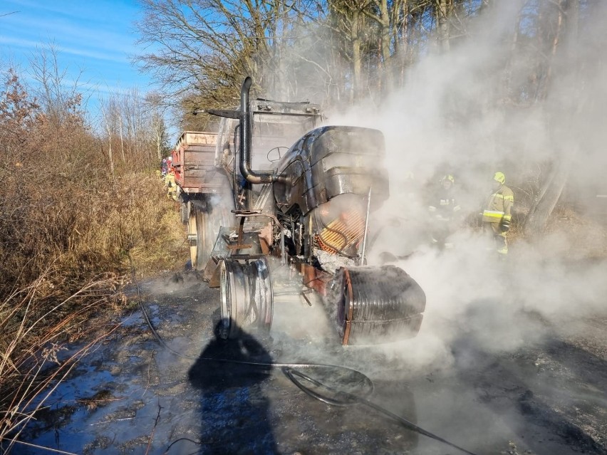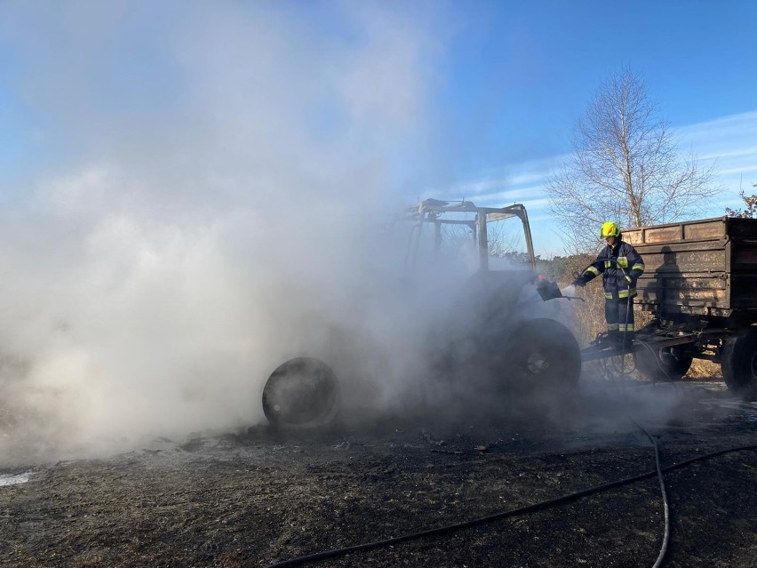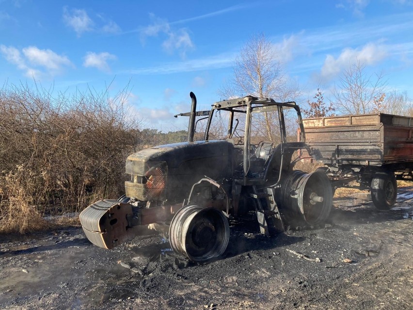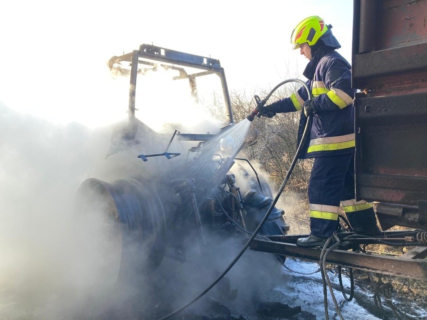 Kilkudziesięciu strażaków gasiło pożar ciągnika z przyczepą. Do zdarzenia doszło dziś ok. godziny 11 w środku lasu w Borzęcinie Górnym na granicy dwóch powiatów brzeskiego i tarnowskiego. Pojazd spalił się niemal całkowicie. Policja wyjaśnia, co było przyczyną pożaru.