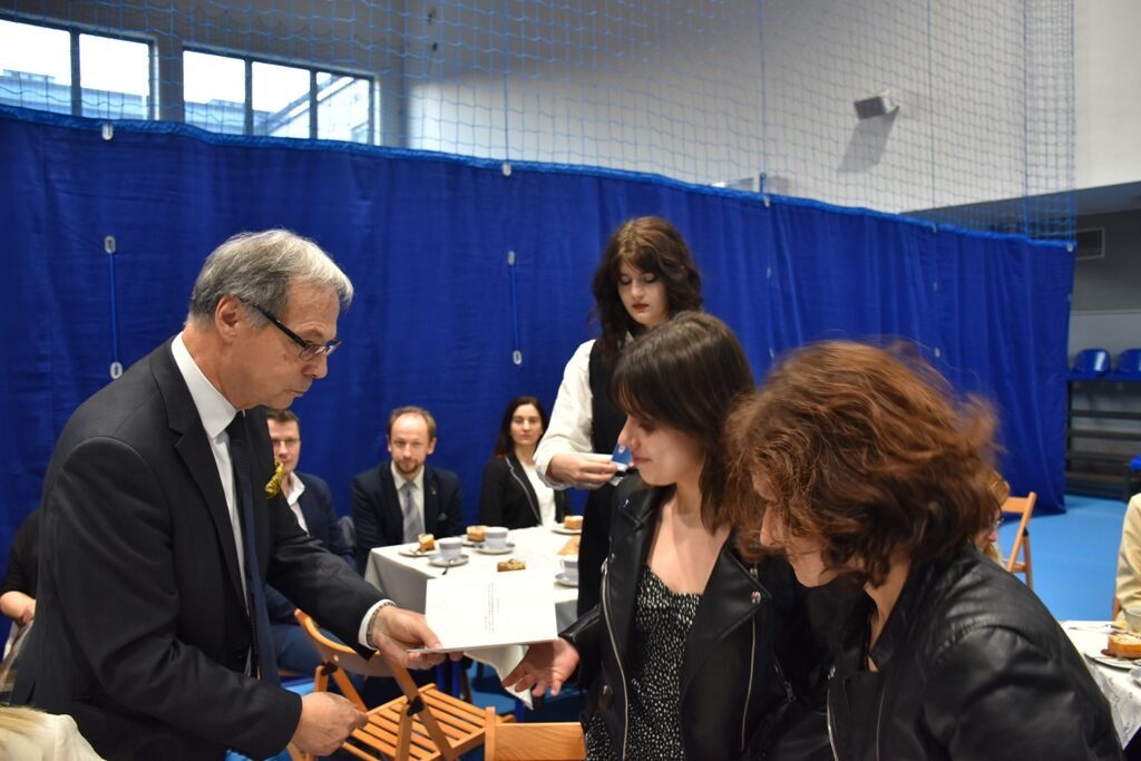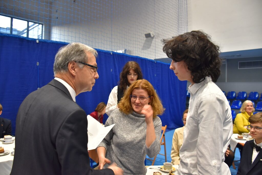 Dziś po południu w hali sportowej ZS Nr 1 w Bochni odbyło się spotkanie z najzdolniejszymi uczniami tej placówki, a także ich rodzicami. Spotkanie wzbogacił wykład dr inż. arch. Piotra Langera pracownika naukowego Politechniki Krakowskiej na temat: „Fenomenu Pogranicza – obrazu Polski i jej sąsiadów okiem naukowca architekta”. Był też program artystyczny w wykonaniu Julianny Sitko – uczennicy kl. I J LO.